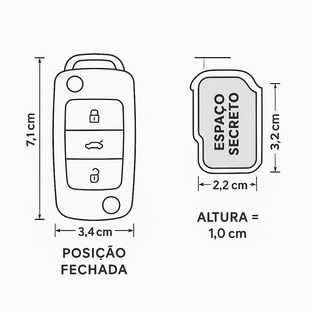 A "Chave Secreta" é uma chave de carro convencional, exatamente como uma chave de carro, mas não se engane! Por trás da sua aparência discreta, ela tem um esconderijo que só quem comprou conseguirá acessar. E não se preocupe, porque após a compra, você vai receber um vídeo exclusivo, revelando todos os truques para abrir esse compartimento secreto. É como ter um passaporte para uma nova dimensão de liberdade!